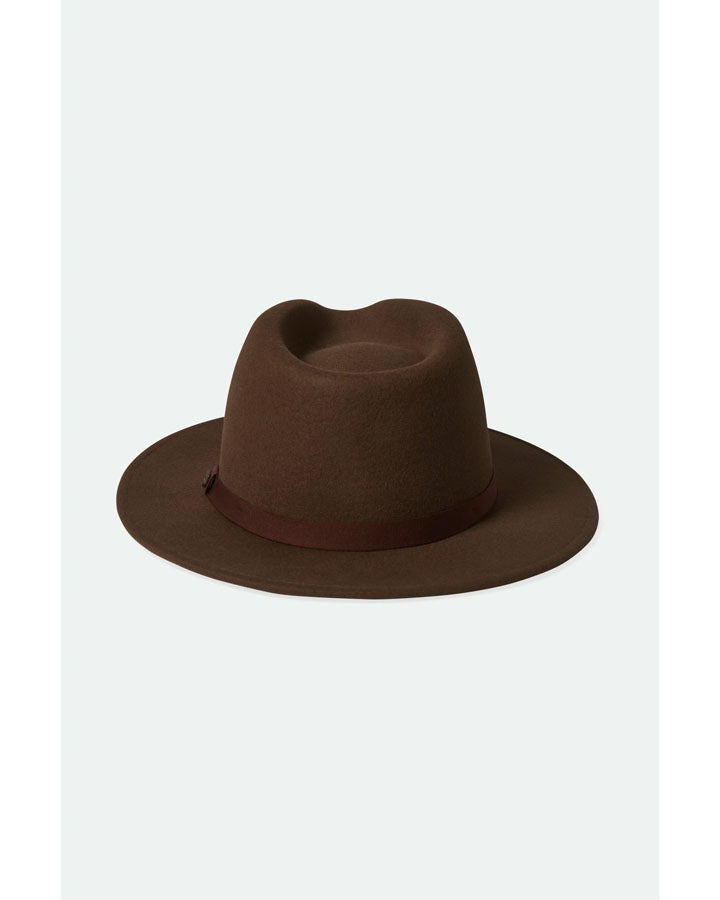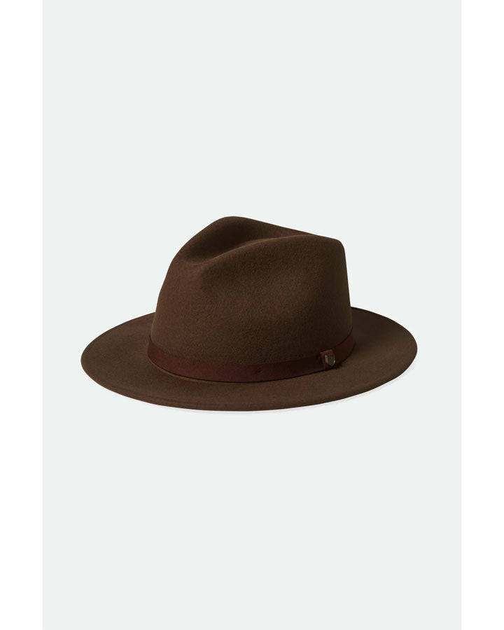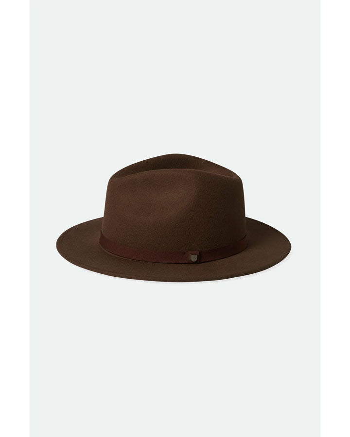 The Messer Packable fedora is a medium-brim classic, designed with a soft pinch and a teardrop crease. This hat is made with responsive and responsibly sourced wool felt that springs back to shape after being packed away for travel. Adjust your fit with the Velcro strap hidden under the inner sweatband.